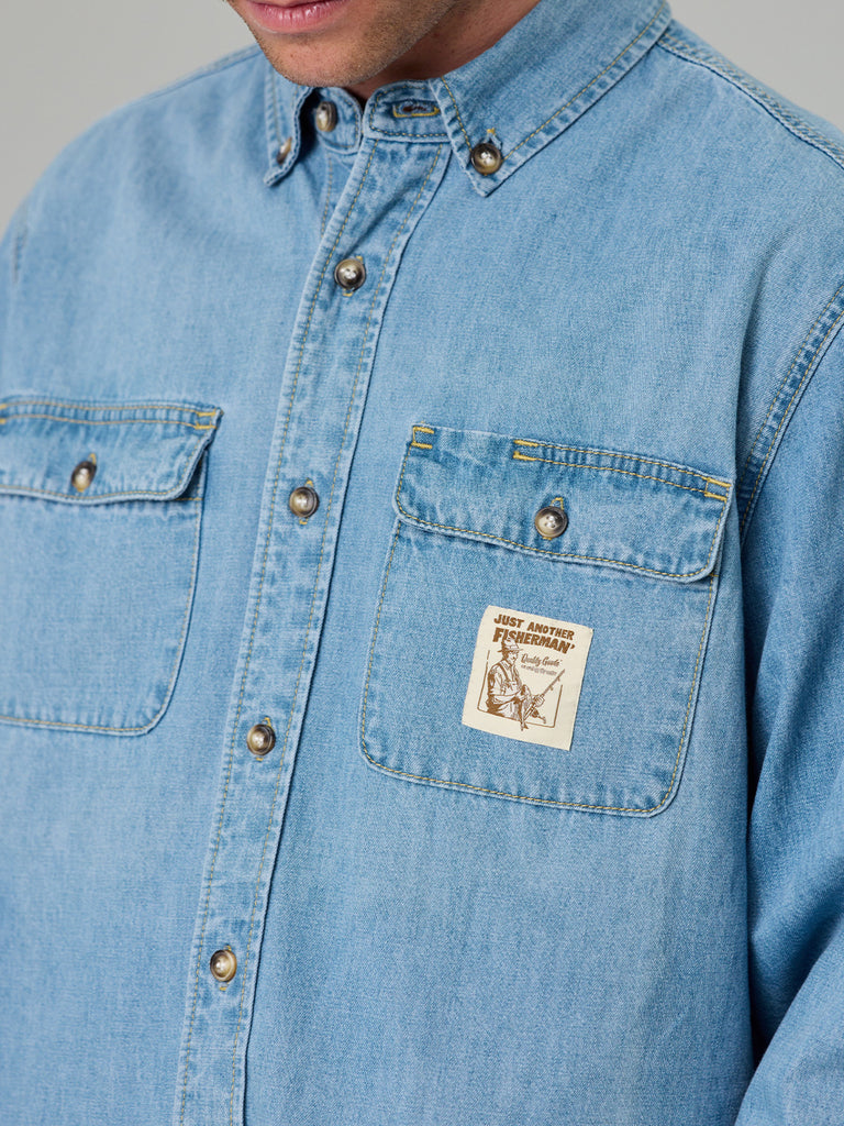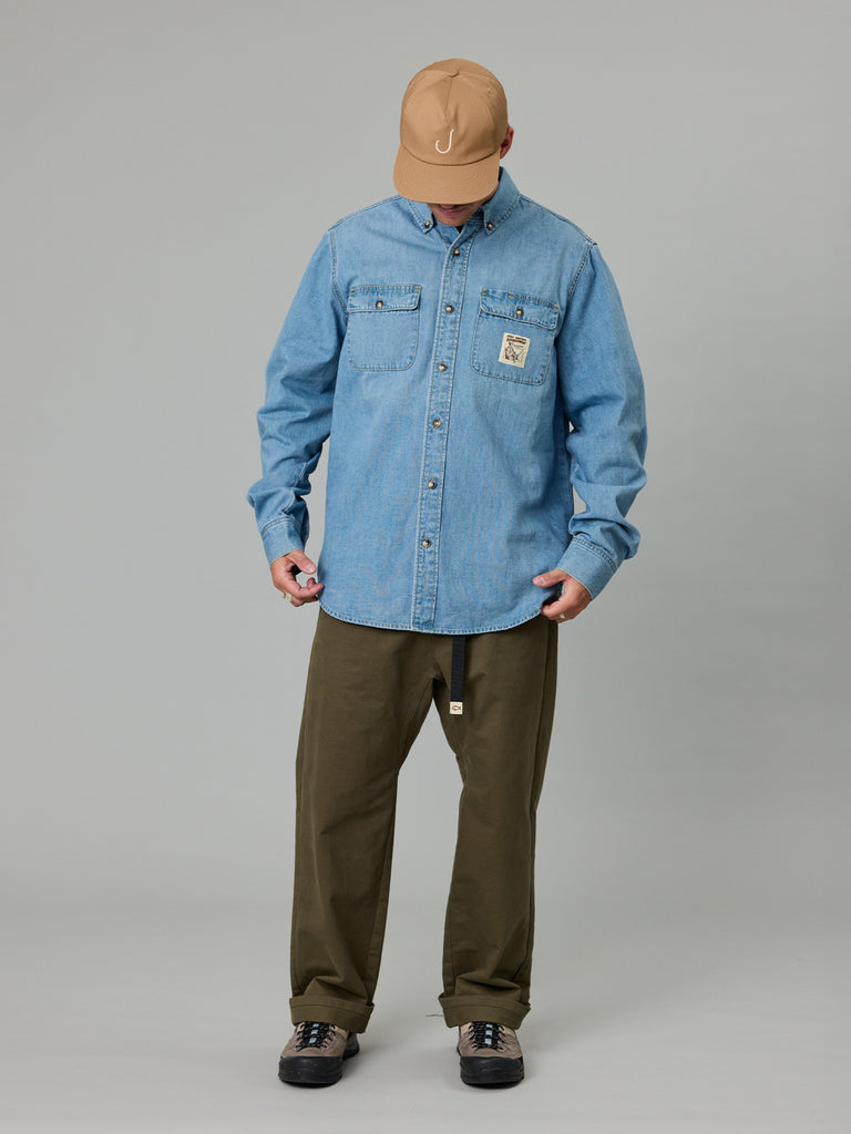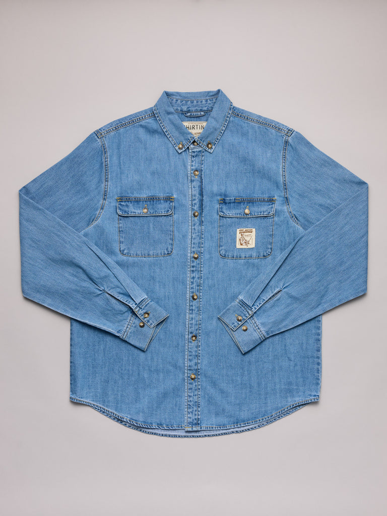 The loyalty denim shirt features a subtle loyalty chest patch, cut in a relaxed fit for easy layering. Perfect for all day wear.