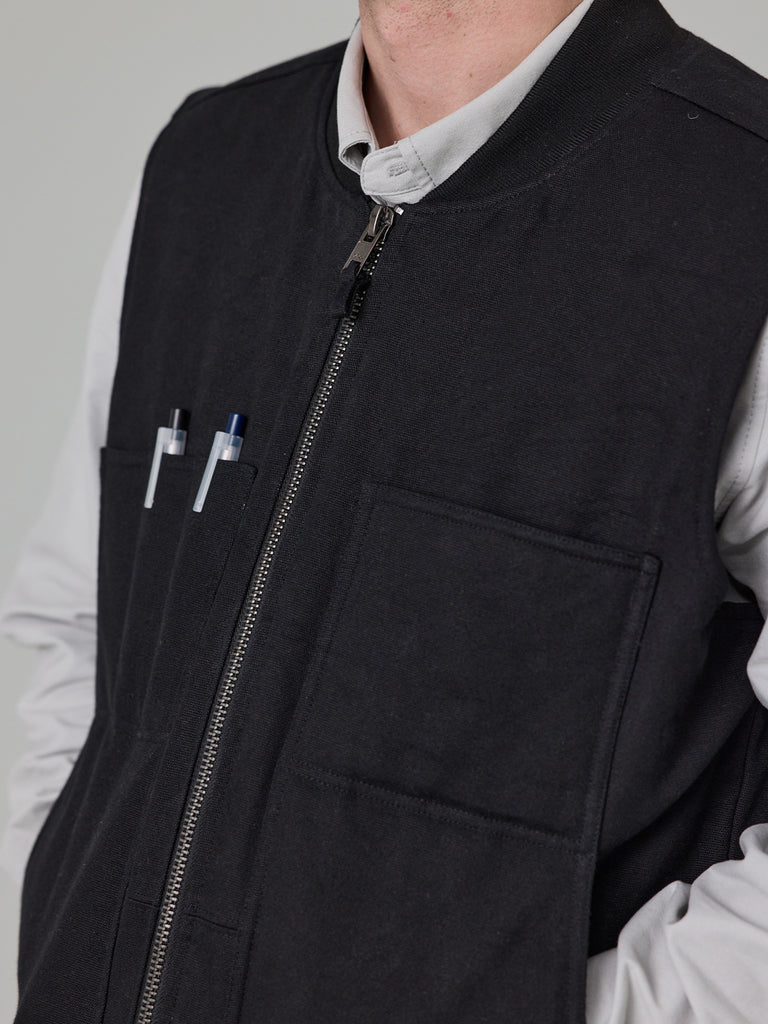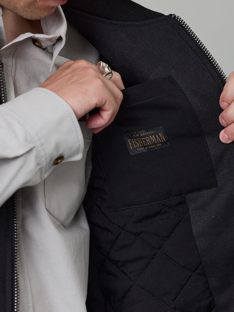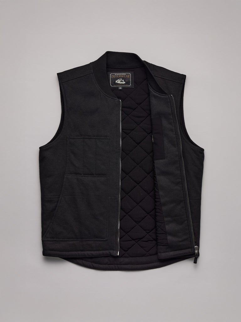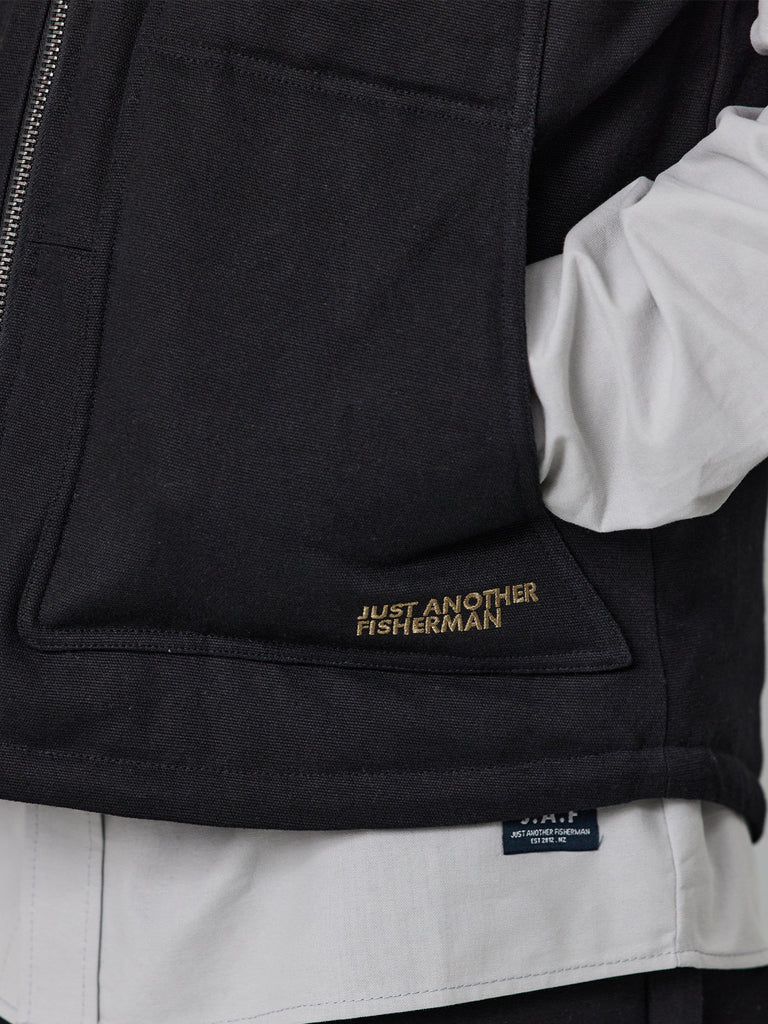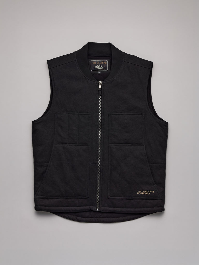 Combat the cold conditions of the sea with the Ocean Works Vest. A Layer-over-everything style that'll work with just about anything. A quality wax coated canvas outer and poly-filled vest, featuring a grunty metal zip, quilted lining and leather pocket patch.