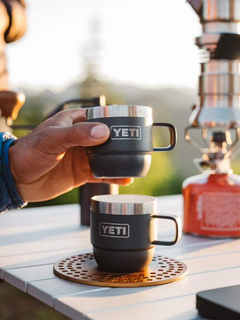 The Rambler® 6 oz. Stackable Mugs are just the right size for a flat white on the deck and a cortado at camp. Plus, its DuraSip™ Ceramic Lining, over-engineered firm-grip handle, and stackability make it ideal for espresso machines, camp kitchens, and beyond.