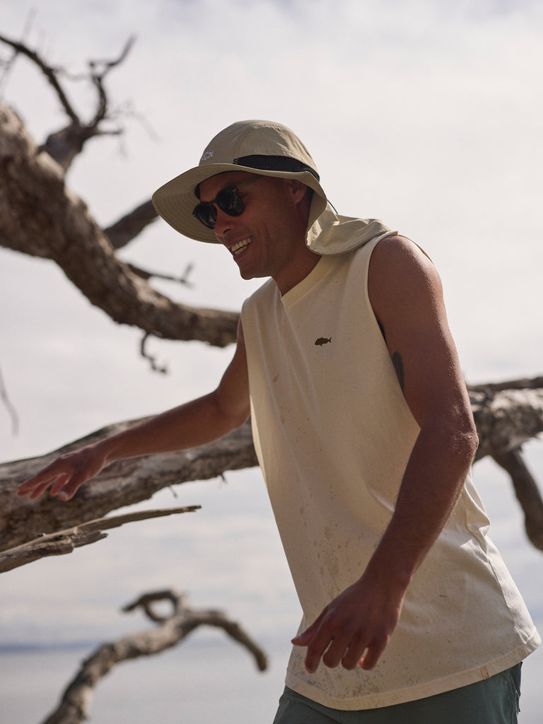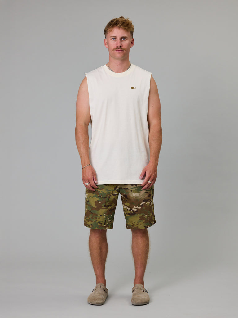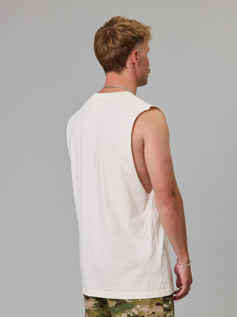 The Stamp Tank is a classic sleeveless muscle tee. Constructed from 100% cotton with low cut sides and a round neckline for breathability and comfort. A great addition to your summer wardrobe.