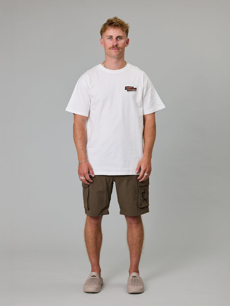 Built tough to last the distance with 4-way stretch for when you get bent over the rail on those hard-fighting kingfish. The quick dry material makes the decision easy to go overboard for a dip on a hot summers day or to swim a battling kingfish down. Plus the handy magnetic-closure pocket means scissors/pliers are stored safely and with no niggly zips to rust, making these ideal shorts for quick or multi-day sessions. - Finn Henderson