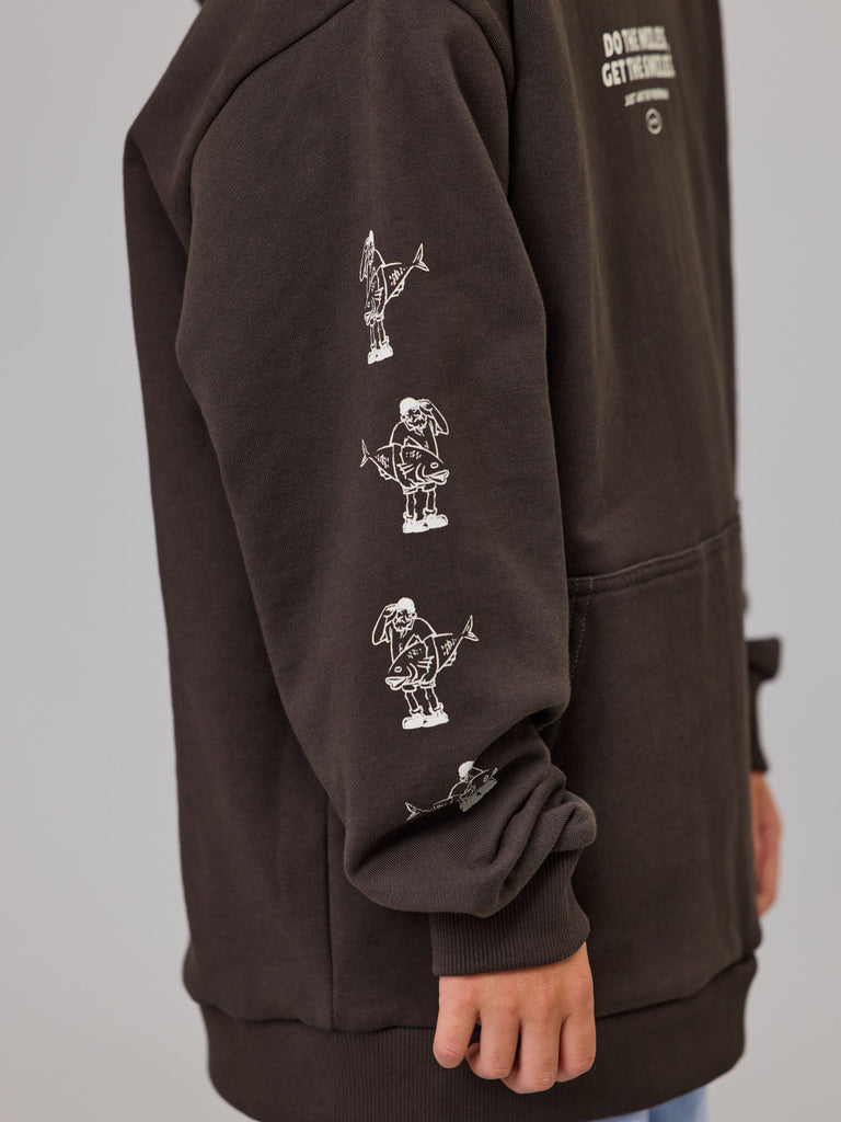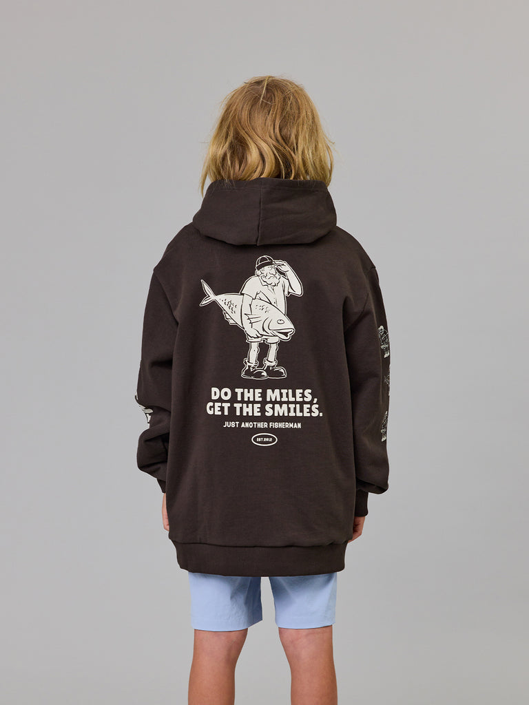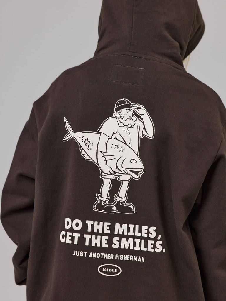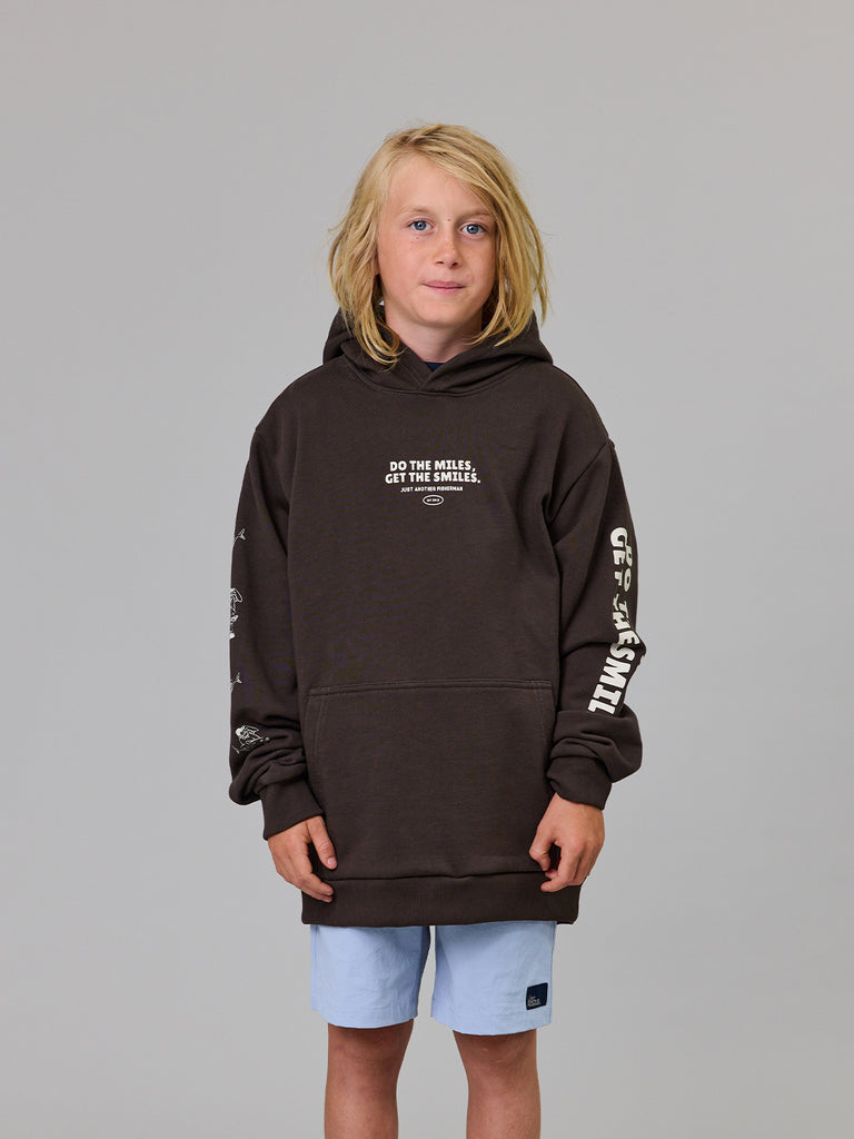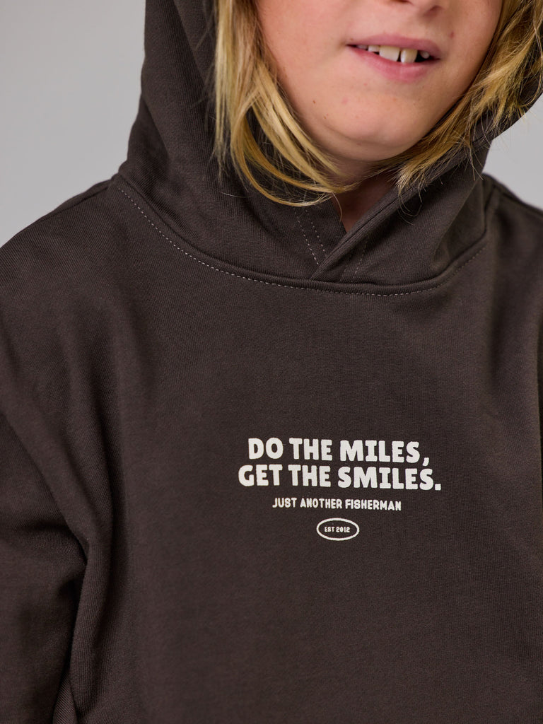 The Mini Do The Miles Hood is a classic heavy weight boxy hoodie. Featuring a front kangaroo pocket with a custom chest, back and sleeves prints. An essential garment for the colder evenings.