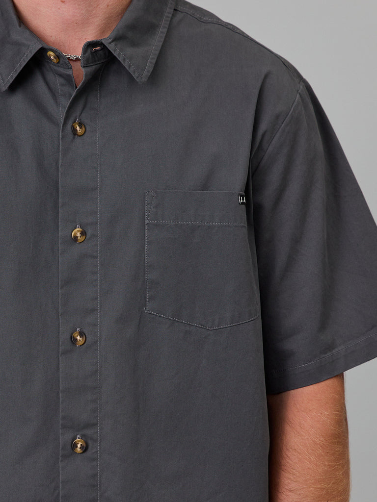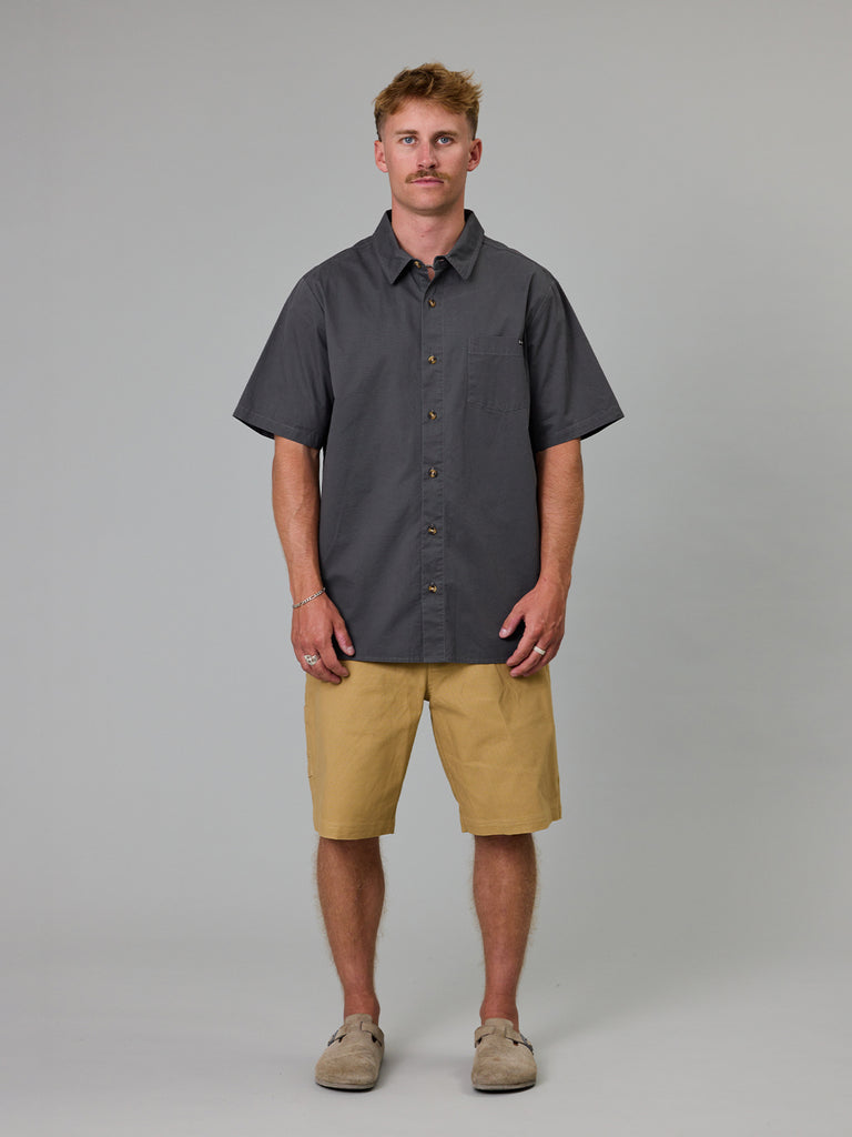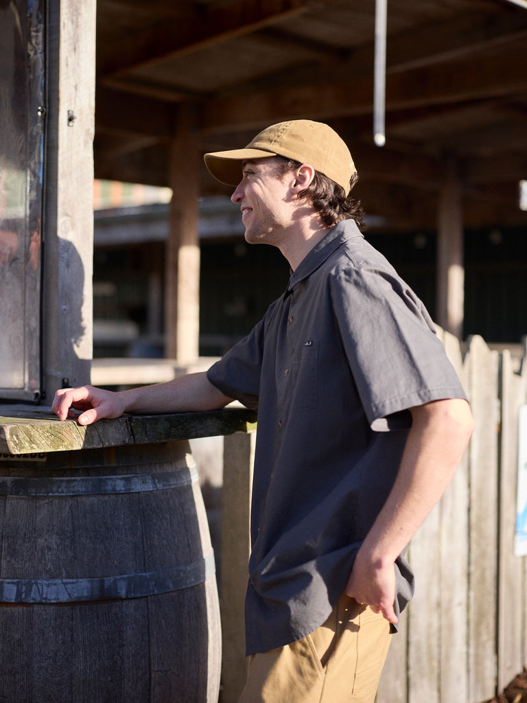 The Ballast short sleeve shirt is a summer staple. Constructed from cotton to provide maximum breathability during those hot days out and about. A classic button-up with a boxy fit to layer over the top of a tee or size down for a regular fit.