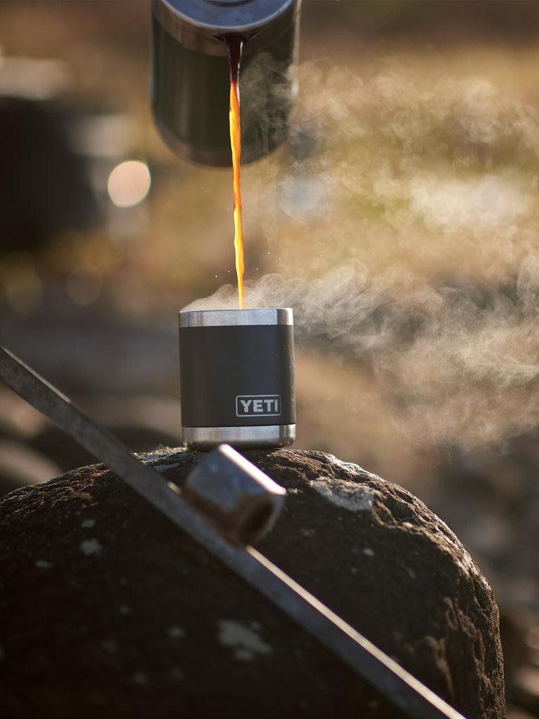 The Rambler 10 oz (296 ml). Lowball Tumbler is the ideal drinking companion at the deer lease or around the campfire. Whether it replaces your morning coffee cup or serves as your nightly whiskey glass, the Lowball's double-wall vacuum insulation will keep your hot drinks hot and your cold drinks cold far longer than standard drinkware. And unlike your favourite bourbon glass, this Lowball will never shatter or leave a ring on your coffee table, thanks to its 18/8 stainless steel construction and No Sweat Design.