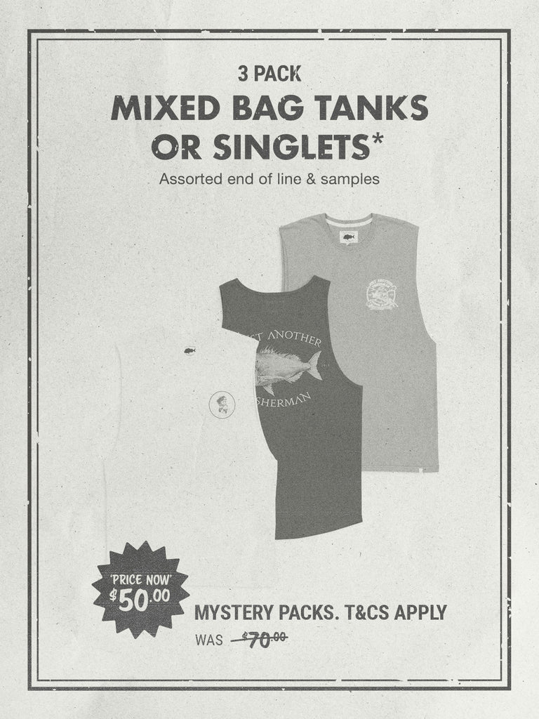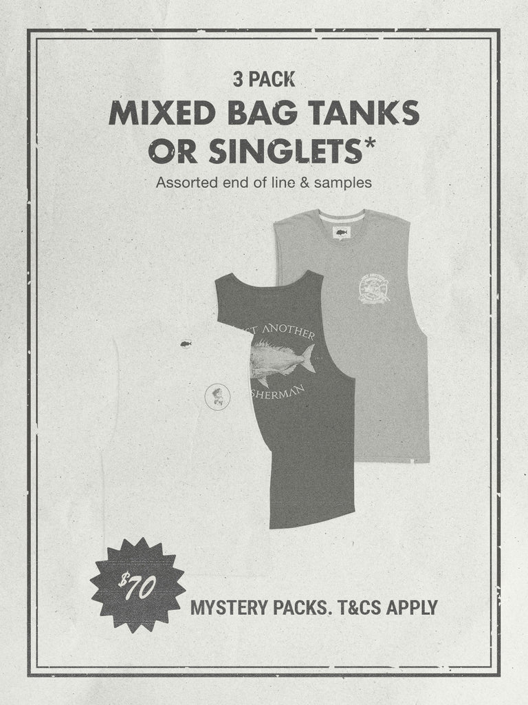 Featuring a random mixed bag of 3 J.A.F custom printed tanks and/or singlets at a bargain price! Pre-curated so colours and prints may vary from imagery. Stock up for your summer wardrobe or also a great gift for your whanau. Don’t sleep on this deal as it will come and go quick! All items are samples and end of line tanks/singlets.*