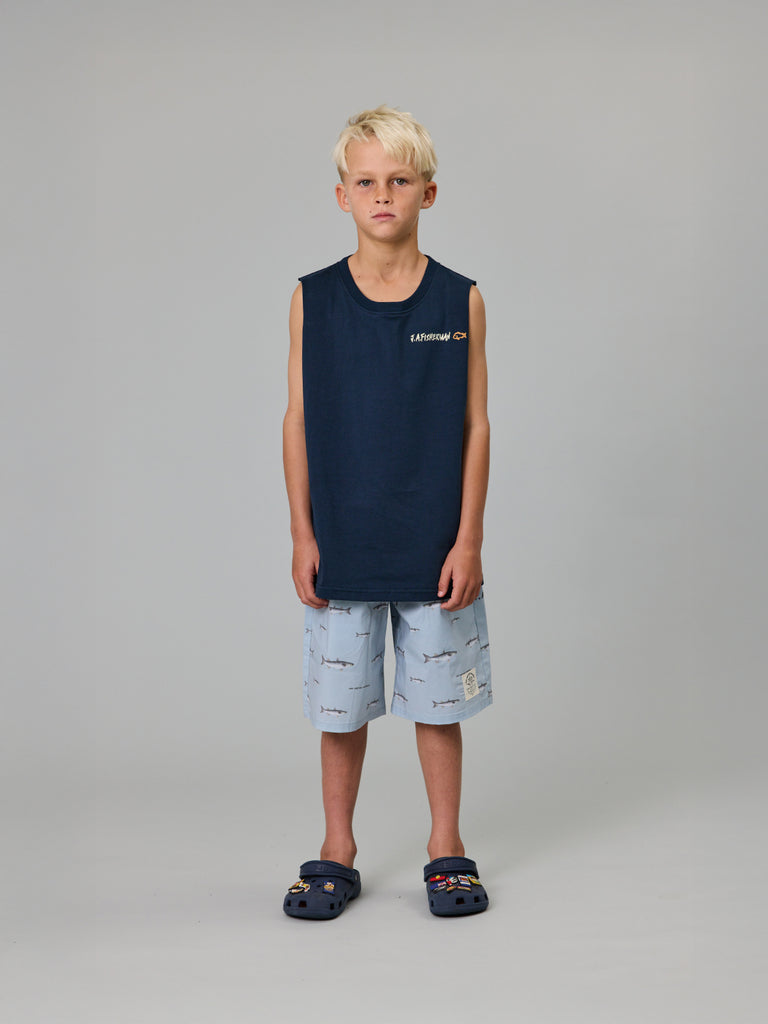 The mini mullet shorts are constructed from a lightweight fabric perfect for the kids to spend a day out on the boat or chilling at the beach.