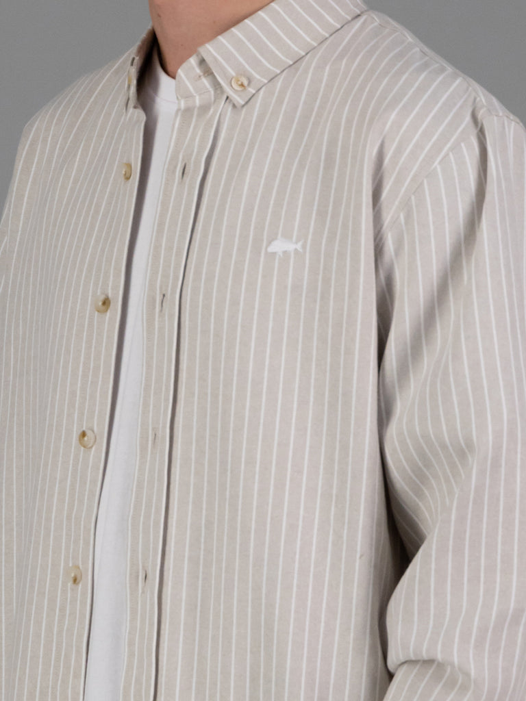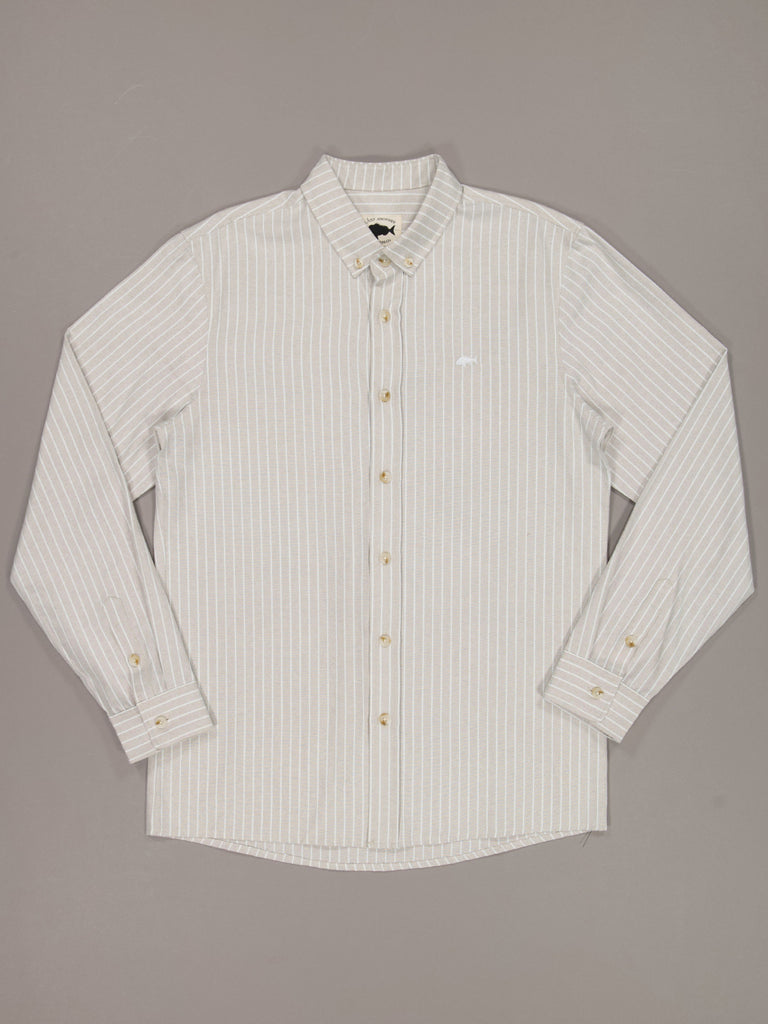 The Seaway Stripe Shirt is a wardrobe must have, a regular fit shirt made from a cotton blend, offering comfort and breathability. Features a simple snapper embroidery on the chest and button-down collar for a polished look.