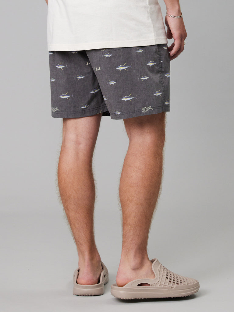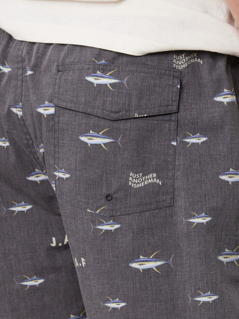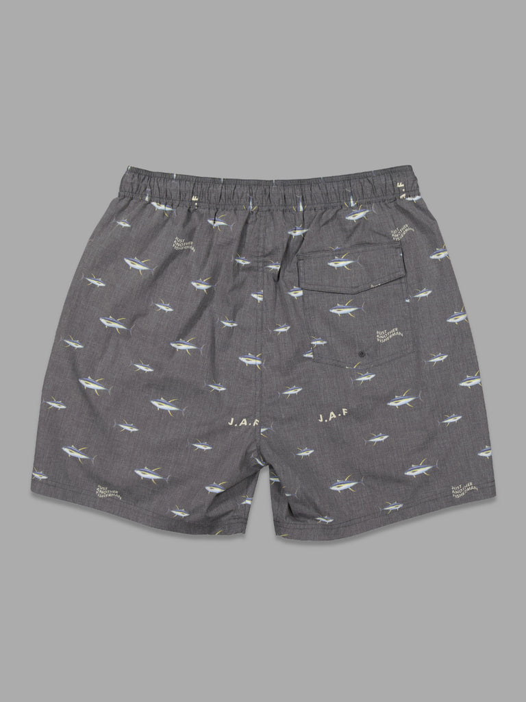 The sickle shorts features a custom J.A.F yellowfin tuna print and elasticated waistband for extra comfort. Made from quick drying fabric, prefect for a full day out at the beach.